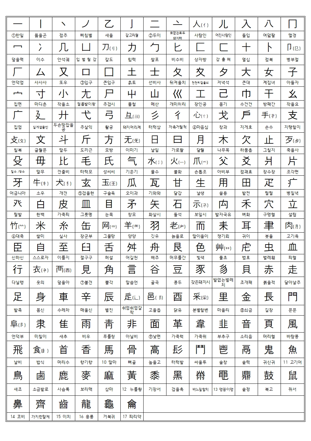 한자 부수 214자