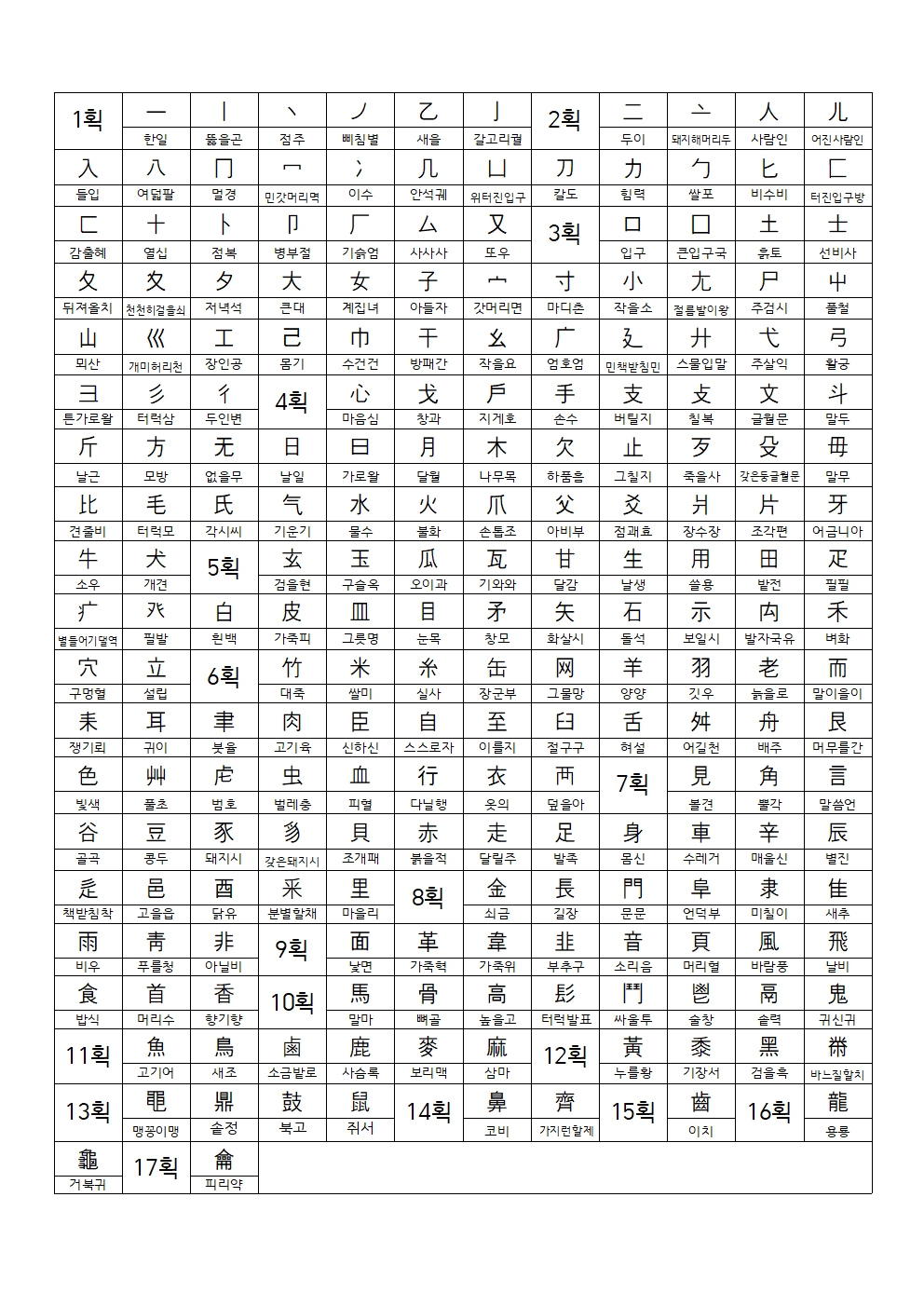 한 장으로 정리하는 한자 부수
